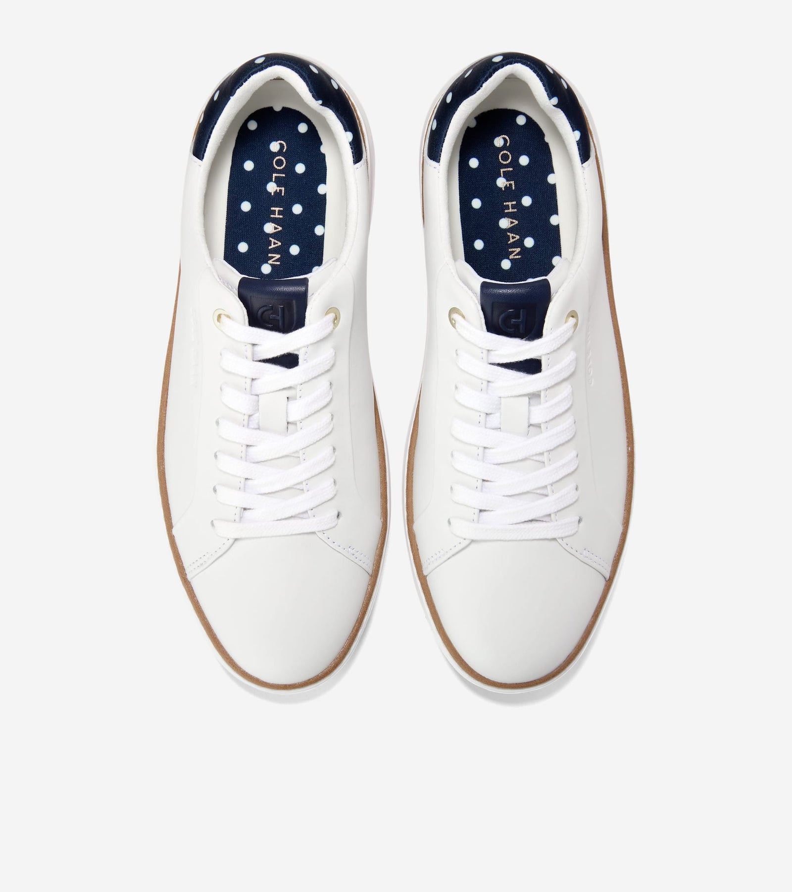 • Leather upper in White and Navy Polka Dot textile; seven-eyelet lacing system